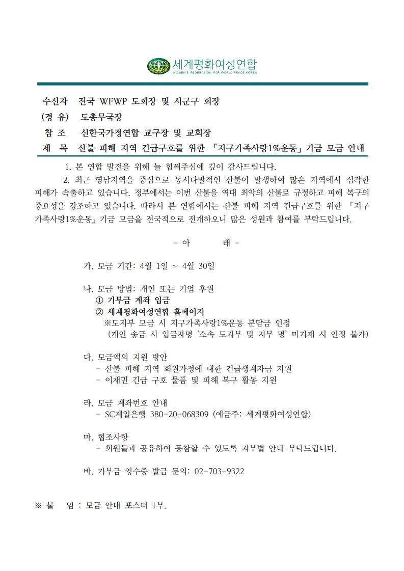 [공문]산불 피해 지역 긴급구호를 위한 기금 모금 안내_1.jpg