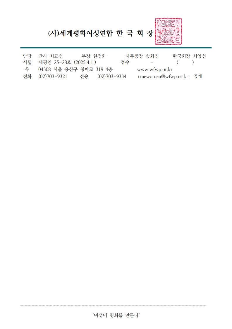 세계평화여성연합 지부코너입니다.