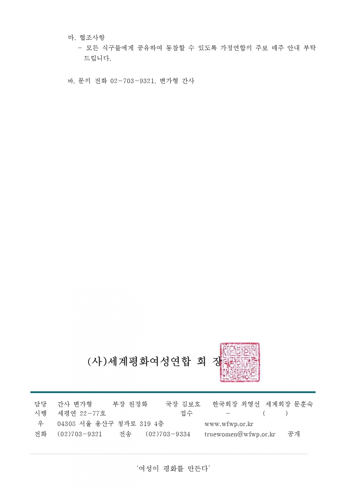 2022 제17차 WFWP 전국 임원 워크숍 개최 안내