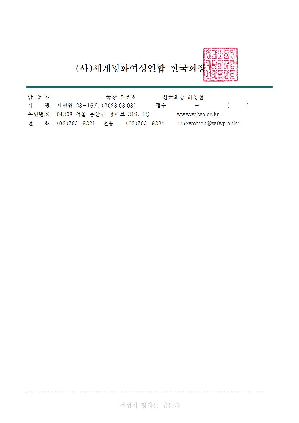 세계평화여성연합 지부코너입니다.