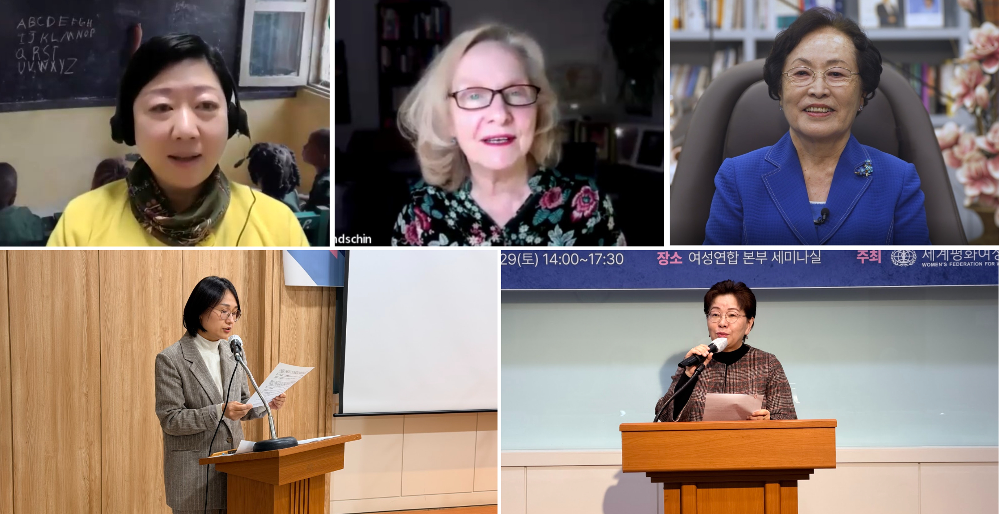 행사는 송화진 사무총장(한국 여성연합)의 개회 선언으로 시작되었다. 이어 김고은 한국회장은 개회사에서 “총재님께서 보여주신 희생·사랑·화해의 리더십을 본받아 한국 여성연합이 국제사회에서 더 큰 책임을 다하고자 한다”고 강조하며, “여성 지도자들의 목소리는 변화의 새로운 불씨가 될 것”이라며 발표자들을 격려했다.
