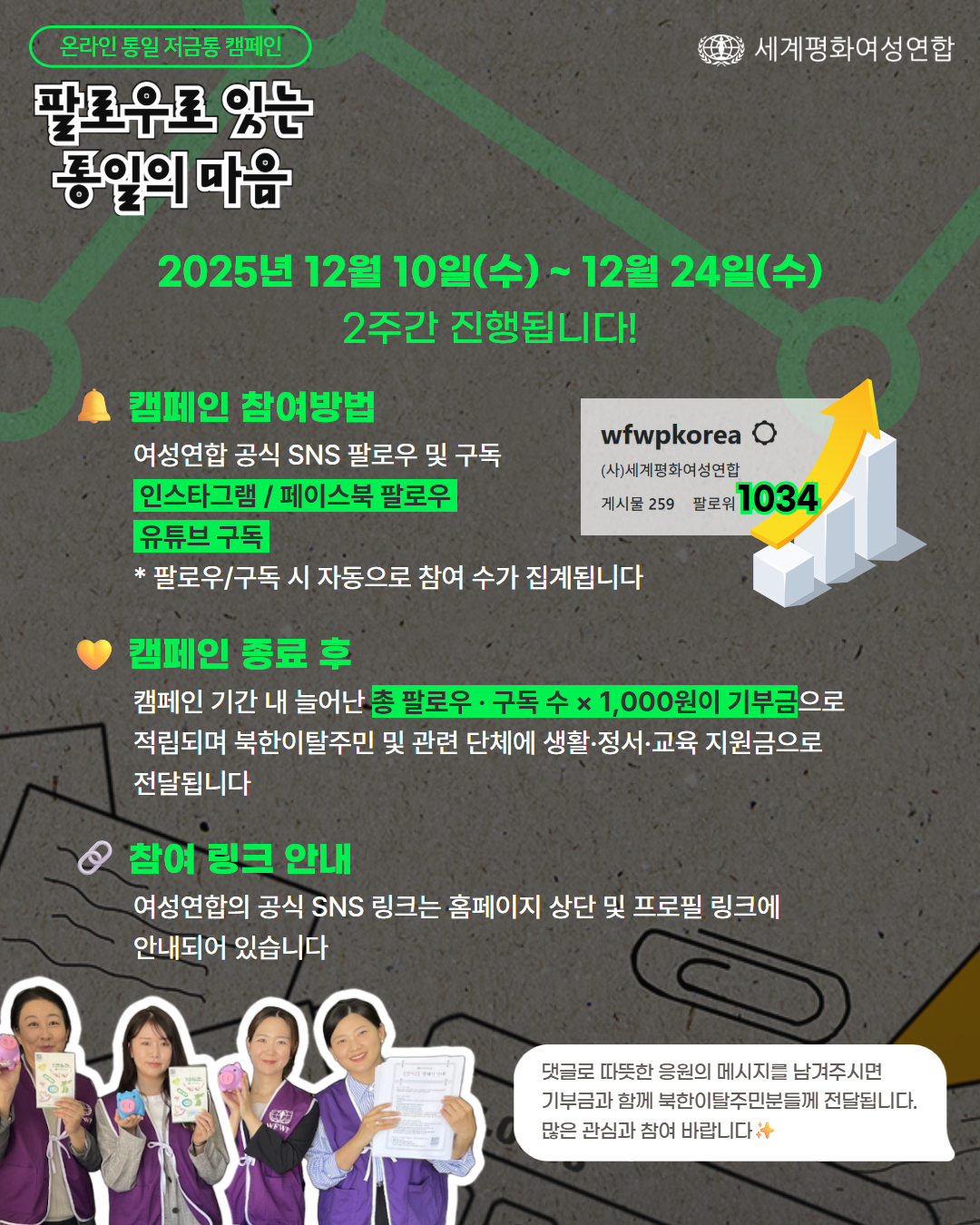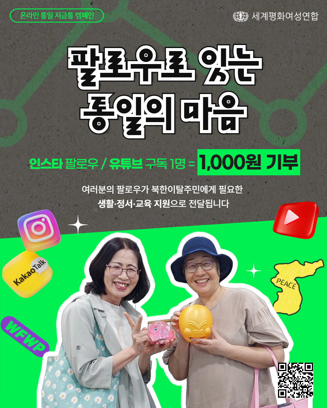 #세계평화여성연합 #wfwp #통일저금통 #sns #팔로우 #캠페인 #남북 #통일 #기부